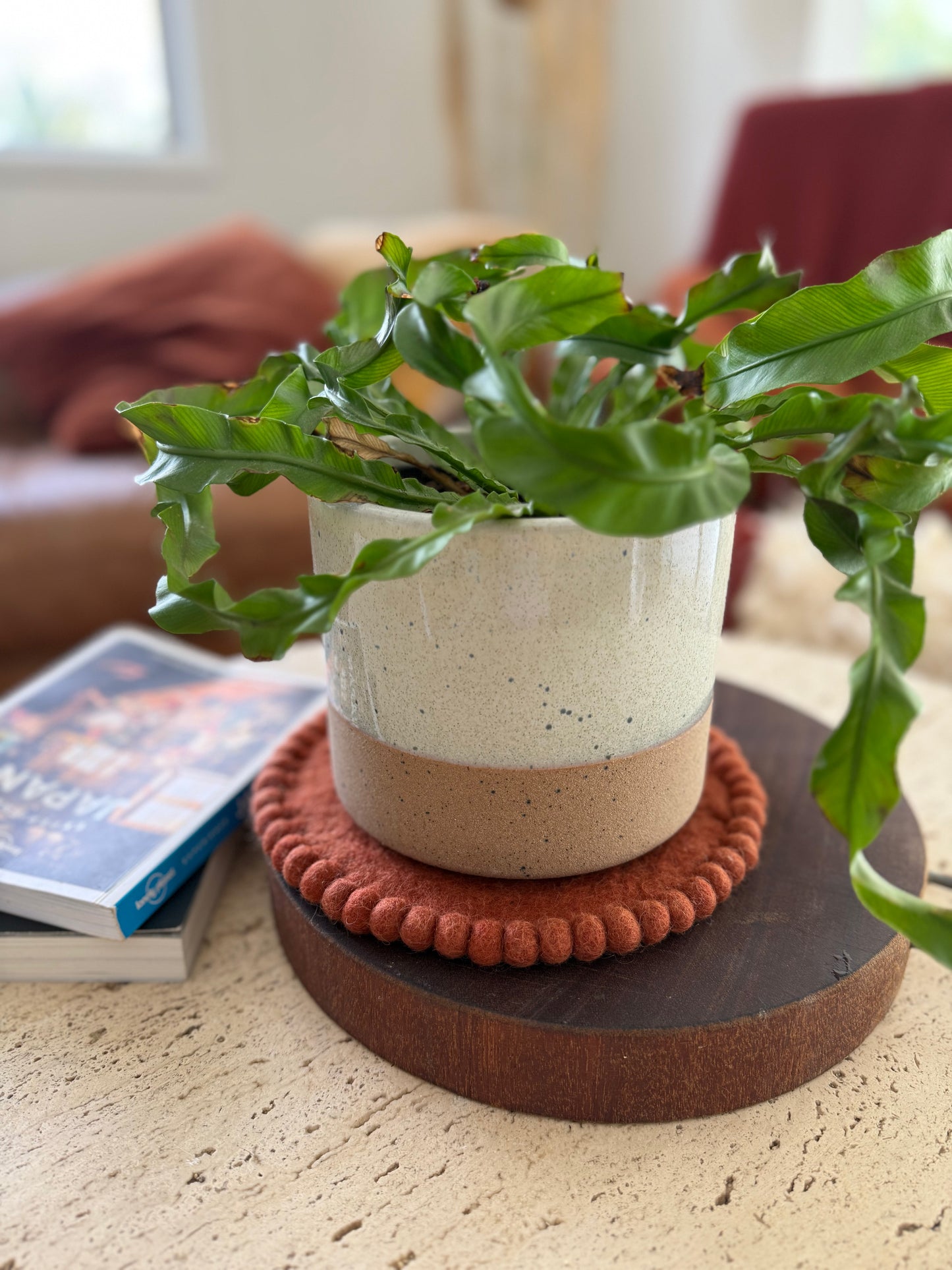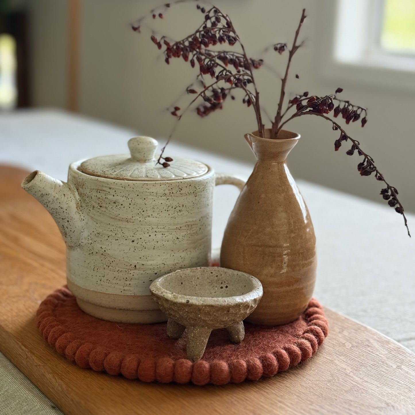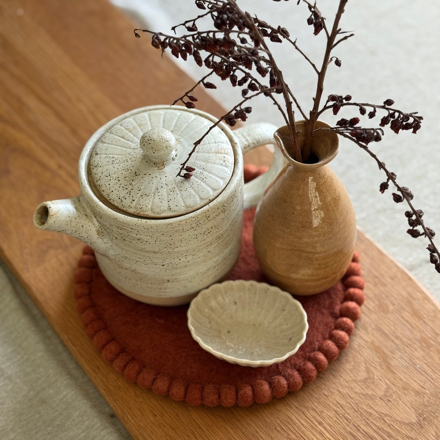 Perfect for hot serving dishes and larger items, pot plants, candles and decorative pieces. Finished with a delicate felt-ball edge, each piece is as practical as it is pretty.